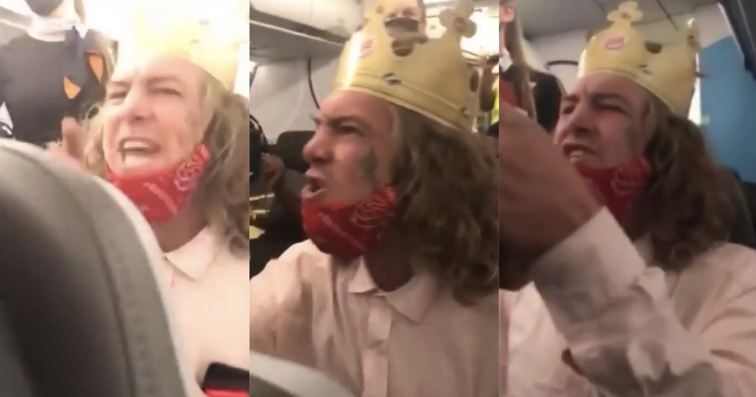 A video posted online shows a man wearing a paper burger king crown getting . Buy burger king crown airplane guy by dirtysanchai as a sticker. And now banned from the airline. Man kicked off plane for second time for using racial slurs. Although it's making the rounds now, it turns out this isn't a new video.